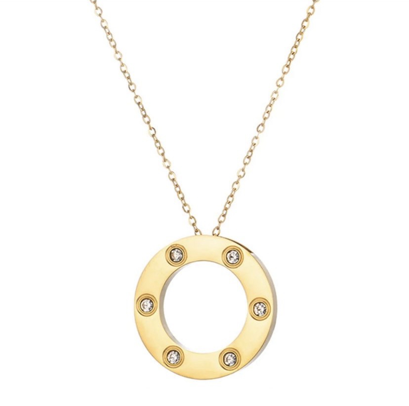 Elevate your elegance with our Gold Circle Necklace, a perfect blend of simplicity and sophistication. This dainty piece features a delicate circle pendant, gracefully adorned with a sparkling crystal, adding just the right touch of shimmer to your neckline. Crafted from high-quality stainless steel, this necklace promises durability and a lasting shine, making it an ideal accessory for any occasion. The minimalist design ensures it can be paired effortlessly with both casual and formal outfits, making it a versatile addition to your jewelry collection.