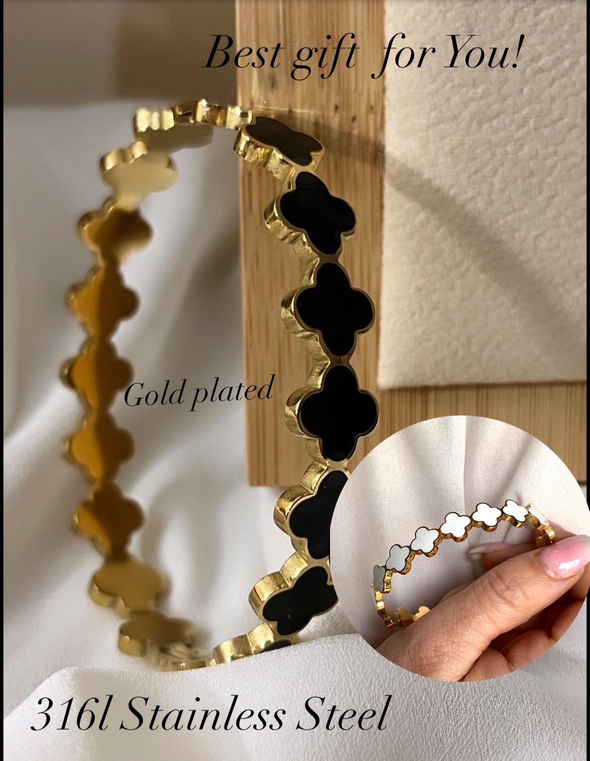 Embrace the beauty of black and white with our beautiful design of gold bangle.